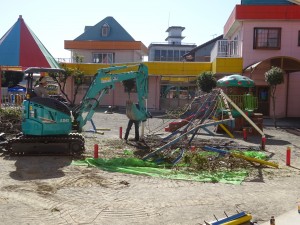 コスモ幼稚園の前身、池野中央保育園(1936~1978)のころからあったもので、かなり古く、解体中に分かったのですが、屋根の部分がかなり歪んでいました。